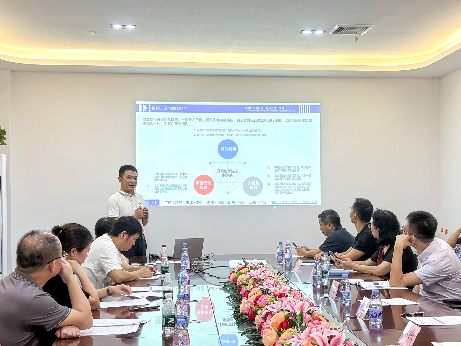 參觀完生產(chǎn)車間、研發(fā)中心與實(shí)驗(yàn)室后,嘉賓們?cè)跁?huì)議室開展了環(huán)境可靠性檢測(cè)設(shè)備交流會(huì)。